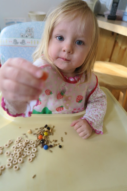 It was somewhat of a rough morning for the birthday girl, though. Guess it goes with being 2... She woke up with a slight cold, fell down 2 stairs and got a mark near her eye, and bumped her head on the dog house (after eating a piece of dog food...) and got a bruise. But she was always very happy and excited when it came to doing birthday things!